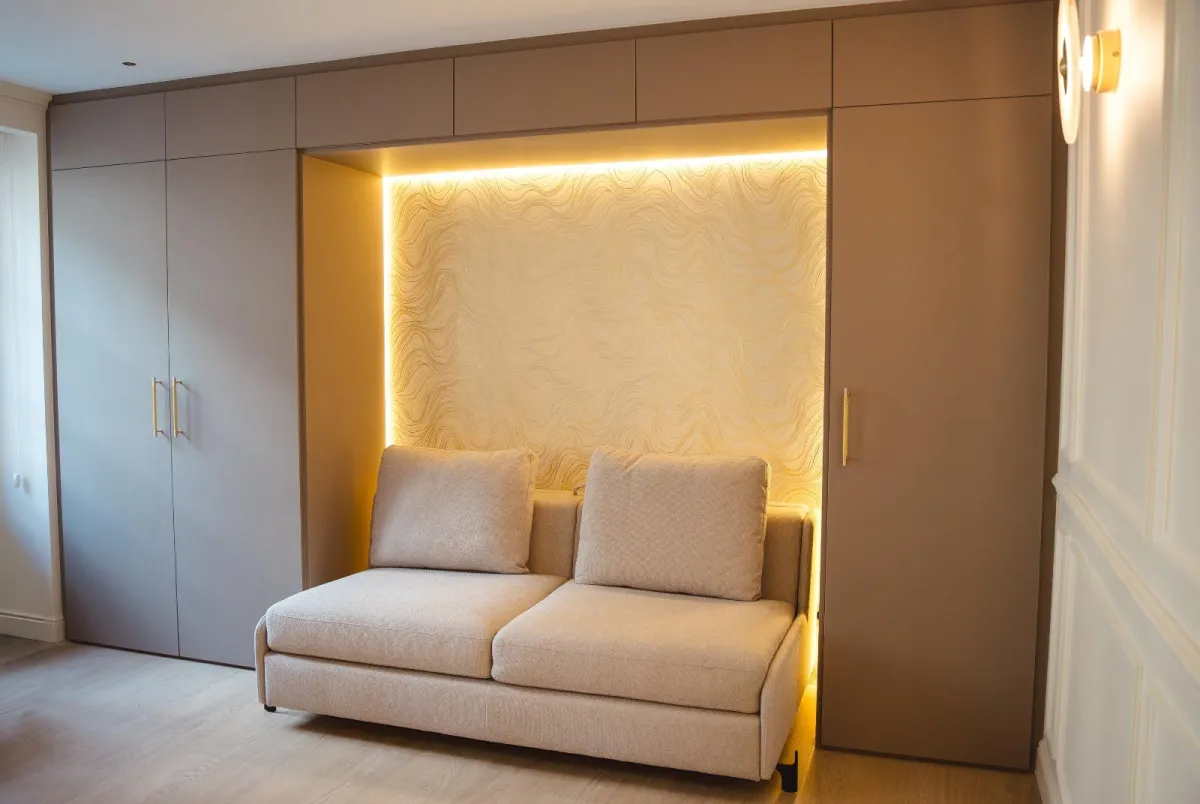 Notre maîtrise s'étend à l'ensemble des domaines de la menuiserie : mobilier sur mesure, cuisines d'exception, dressings élégants, bibliothèques raffinées, menuiseries extérieures en bois, PVC ou aluminium, escaliers sculptés avec art, et aménagements intérieurs complets. Nous intégrons également les technologies les plus modernes : éclairage LED, ferrures invisibles, systèmes soft-close et push-open. Un seul interlocuteur de confiance pour orchestrer l'intégralité de votre projet.